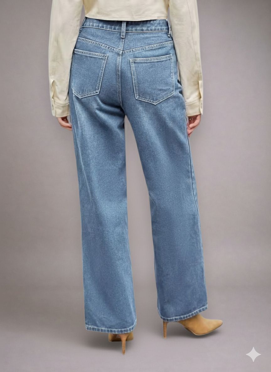 Jean femme taille haute à coupe droite, parfait pour toutes les occasions.