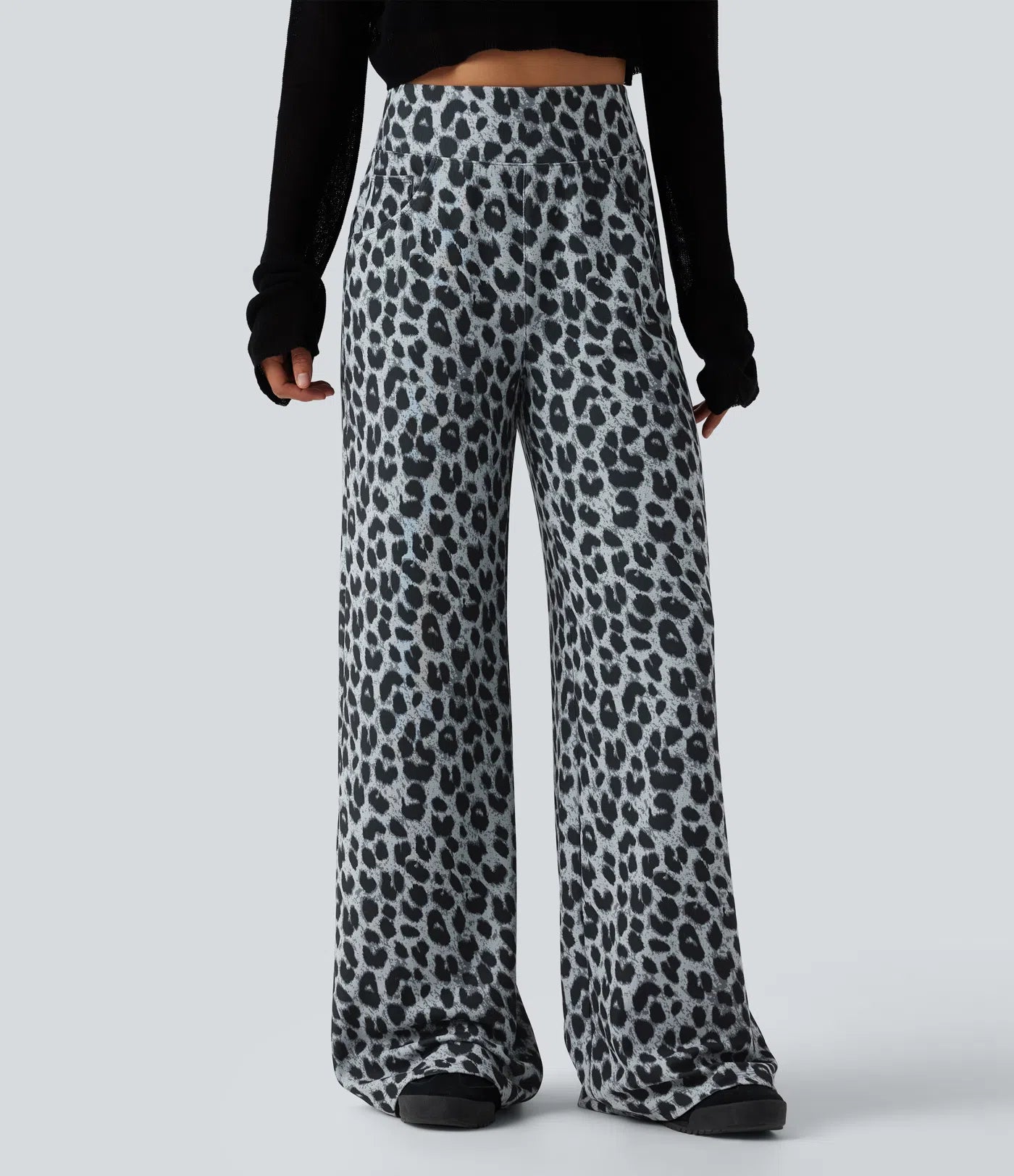 Nora™ Pantalon casual ample gaufré à imprimé léopard, taille haute, avec poches
